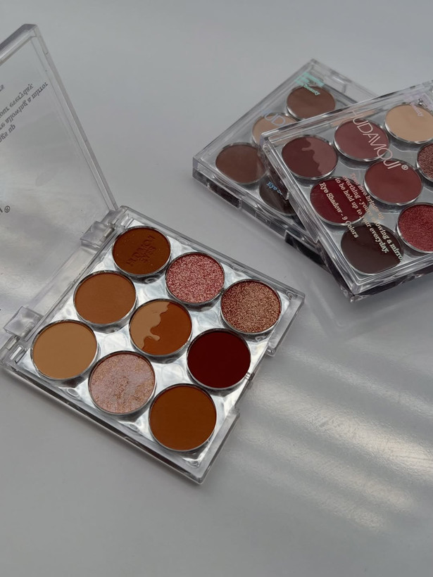 یه پالت خوشگل و همهفنحریف که عاشقش میشی رنگهاش حسابی خوشرنگ و پرپیگمنتن با یه بار کشیدن، رنگ کامل رو میبینی! بافتش نرم و مخملیه، خیلی راحت پخش میشن و قشنگ بلِند میشن بدون ریزش و بدون بو ماندگاری بالا تا ساعتها بدون کمرنگ شدن ترکیب رنگهای مات، شاین و گلیتری داره هم برای میکاپ روزانه هم برای آرایش مجلسی و خاص رنگبندیش کامله! از رنگهای پایه تا تیره و براق، همش تو یه پالت بستهبندیش محکم و خوشدسته، راحت تو کیف جا میگیره تو سه طیف رنگی جذاب که هر سلیقهای رو راضی میکنه با یه پالت، کلی میکاپ متفاوت بساز و همیشه خاص بدرخش