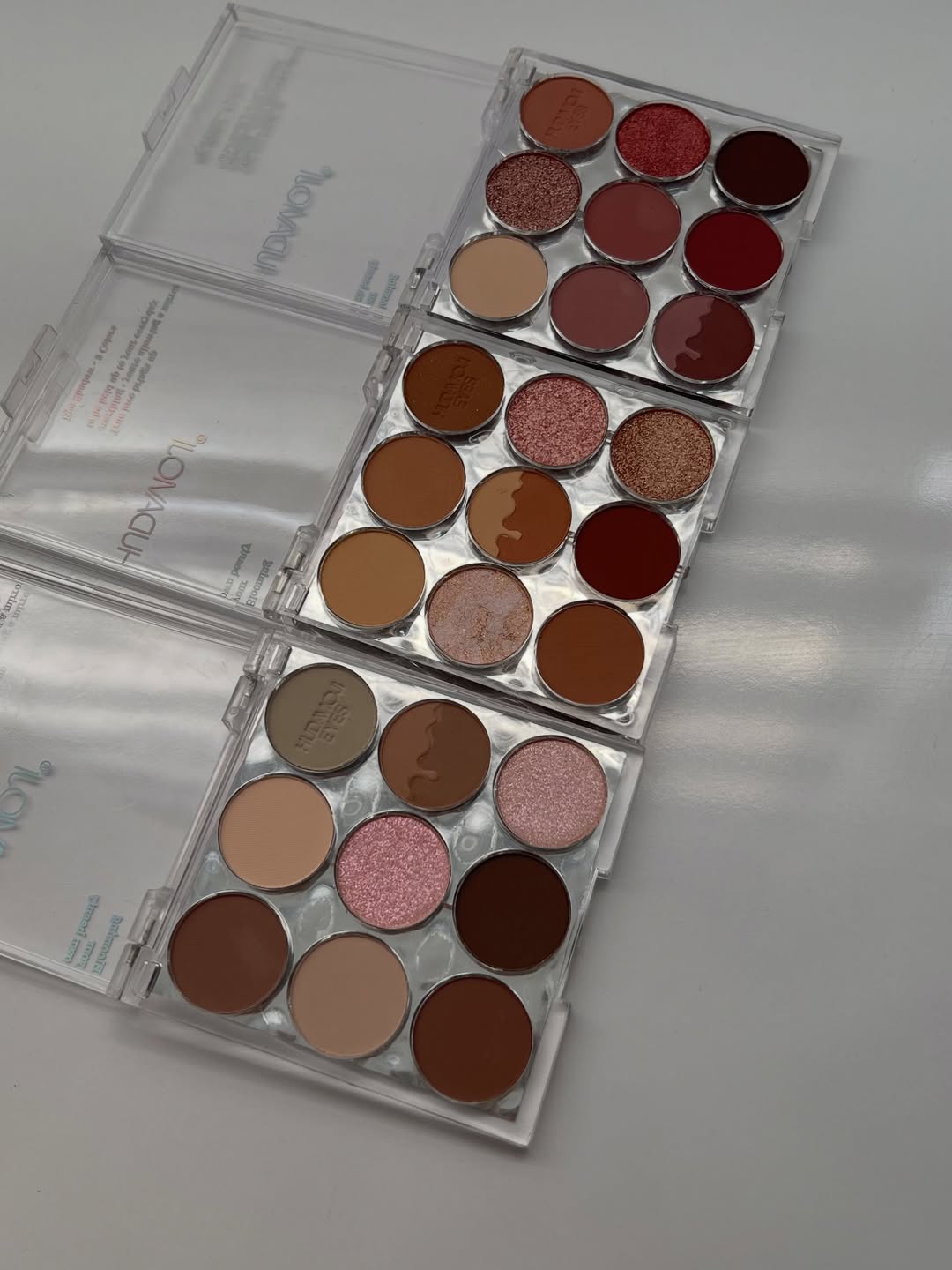 یه پالت خوشگل و همهفنحریف که عاشقش میشی رنگهاش حسابی خوشرنگ و پرپیگمنتن با یه بار کشیدن، رنگ کامل رو میبینی! بافتش نرم و مخملیه، خیلی راحت پخش میشن و قشنگ بلِند میشن بدون ریزش و بدون بو ماندگاری بالا تا ساعتها بدون کمرنگ شدن ترکیب رنگهای مات، شاین و گلیتری داره هم برای میکاپ روزانه هم برای آرایش مجلسی و خاص رنگبندیش کامله! از رنگهای پایه تا تیره و براق، همش تو یه پالت بستهبندیش محکم و خوشدسته، راحت تو کیف جا میگیره تو سه طیف رنگی جذاب که هر سلیقهای رو راضی میکنه با یه پالت، کلی میکاپ متفاوت بساز و همیشه خاص بدرخش