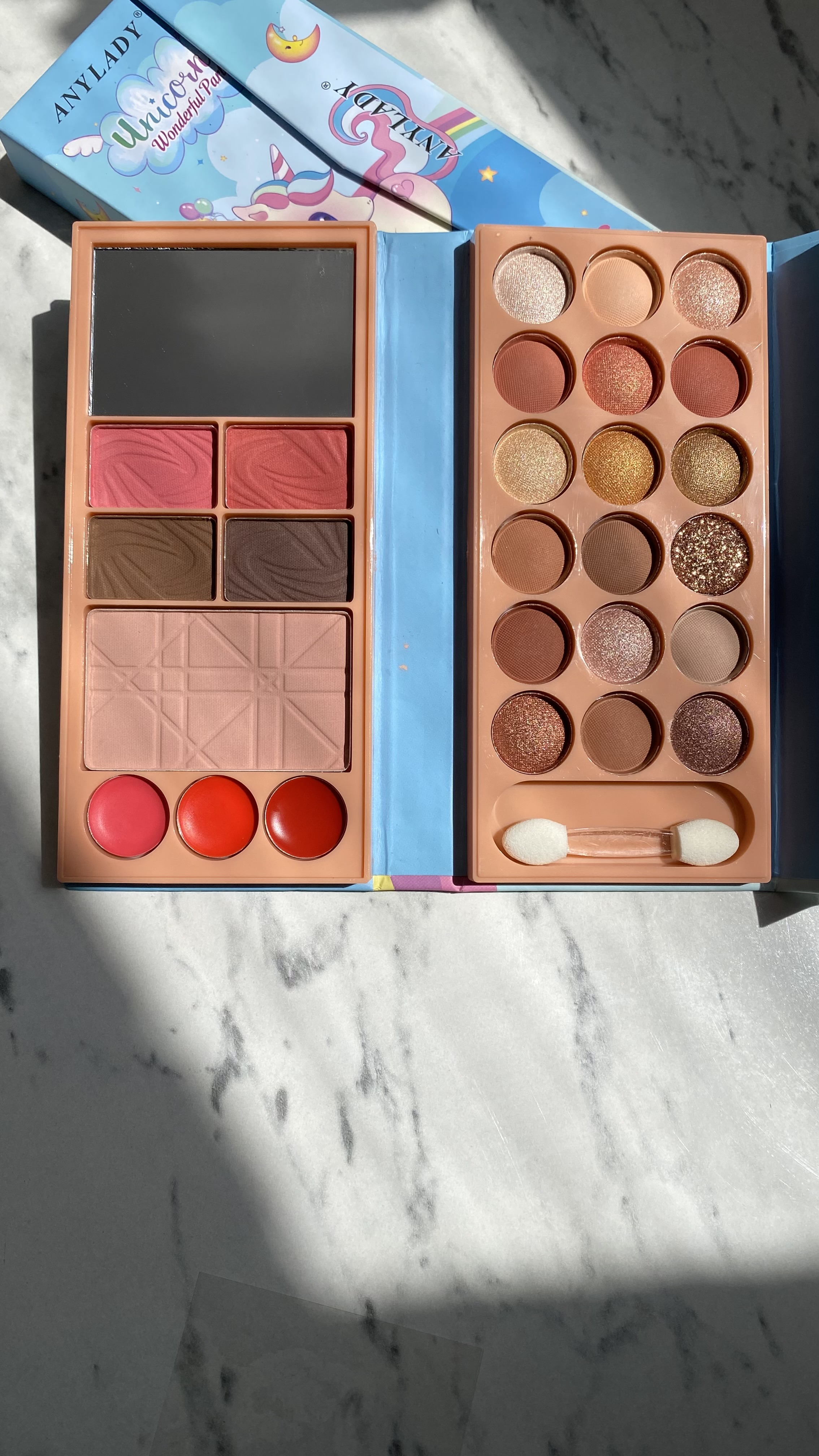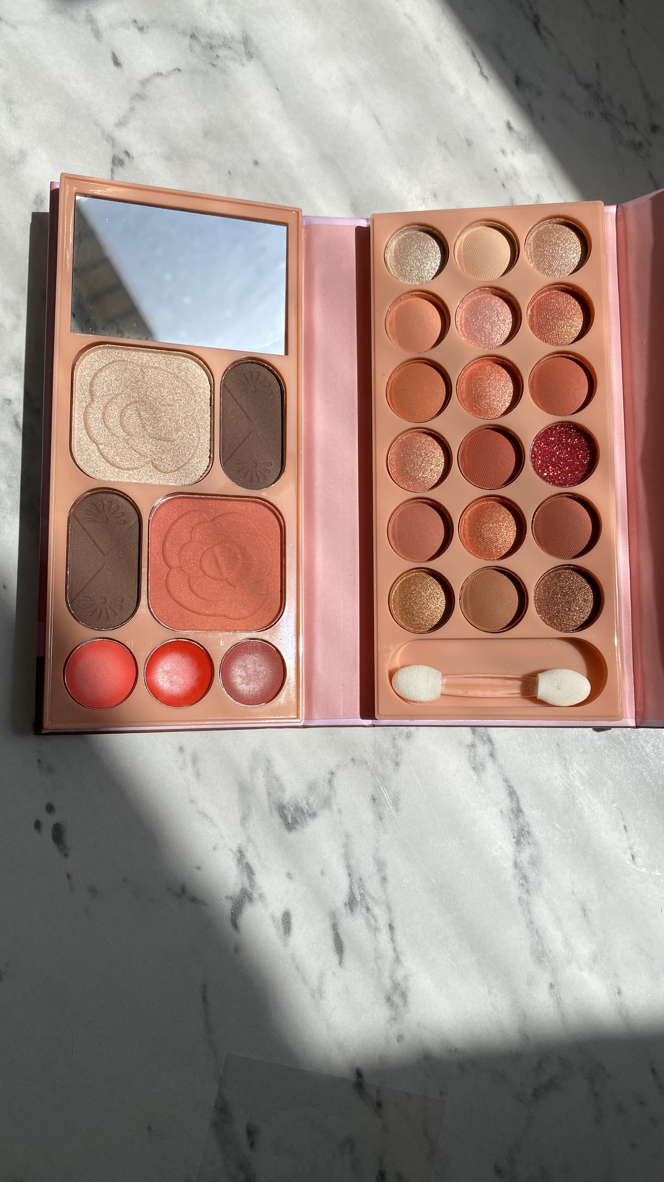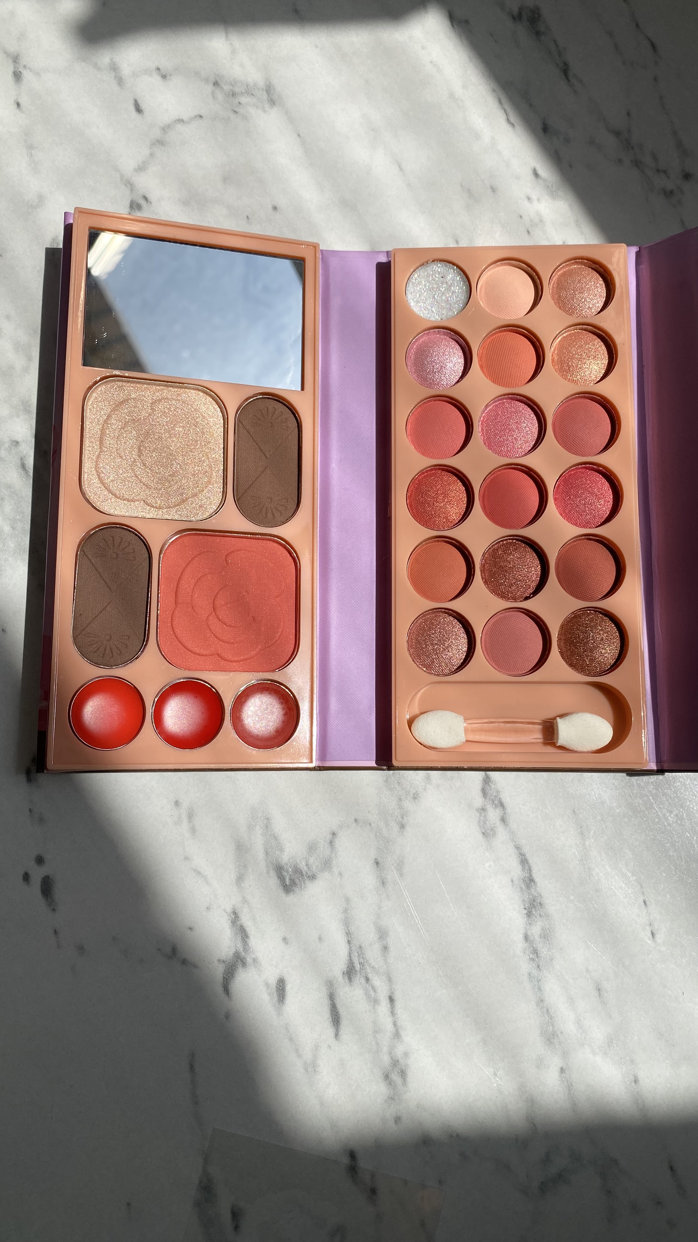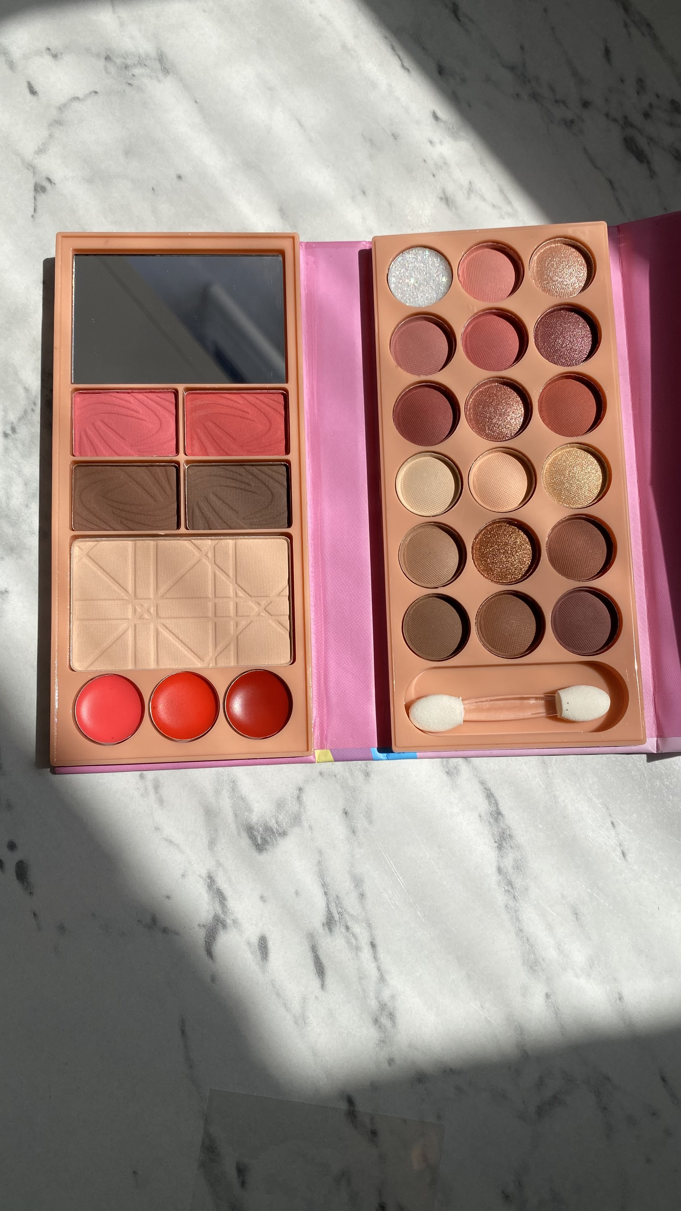 وقتی فقط یک پالت کوچولو همهچی رو برات جمع کرده از سایه و رژ گرفته تا هایلایتر و پنکیک یعنی دیگه لازم نیست یه کیف پر از لوازم ببری سفر.